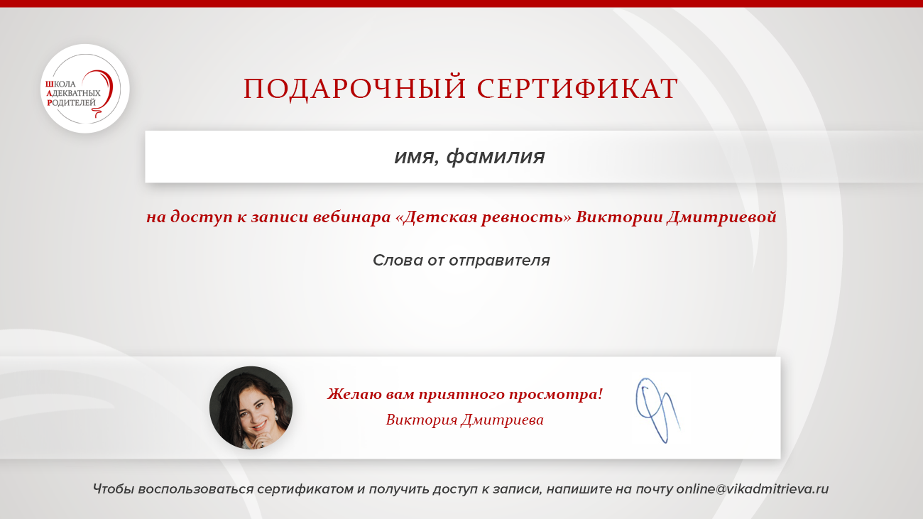 Подарите этот вебинар человеку, которого волнует тема детской ревности.