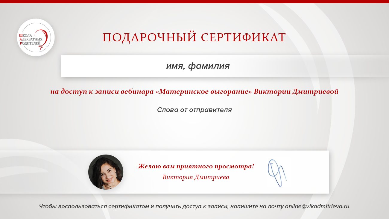 Подарите этот вебинар человеку, которого волнует тема материнского выгорания.