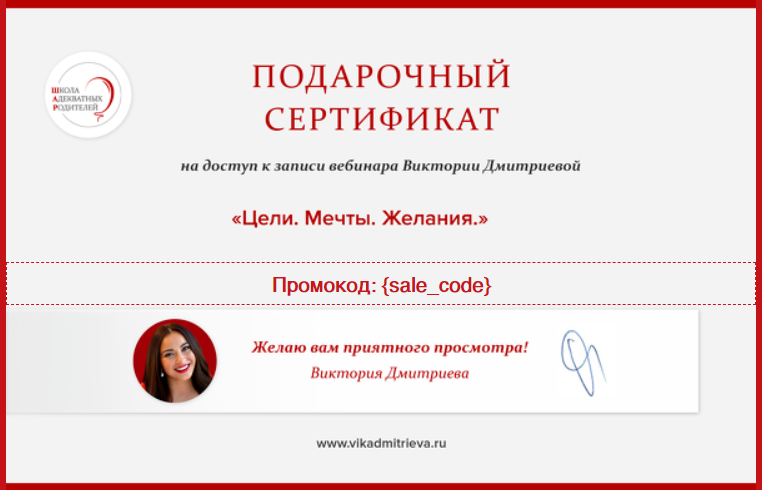 мгновенно на адрес электронной почты вам придет Подарочный сертификат с промокодом, который вы можете подарить любимому человеку.